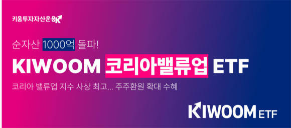 키움투자자산운용은 ‘KIWOOM 코리아밸류업 ETF(496090)’의 순자산이 2월 12일 기준 1,000억 원을 돌파했다고 19일 밝혔다.