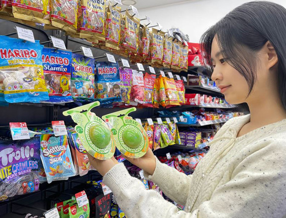 이번에 출시하는 공동 개발 상품은 ‘초BIG!무쿠점보멜론구미’다. 돈키호테에서 인기를 끌고 있는 ‘무쿠(까먹는) 젤리’ 콘셉트와 GS25의 대용량 ‘점보’ 트렌드를 접목한 상품이다. 멜론 모양의 젤리를 직접 까서 겉과 속살 젤리를 먹는 것이 특징으로, 135g 용량이다. 신제품은 26일 출시된다.