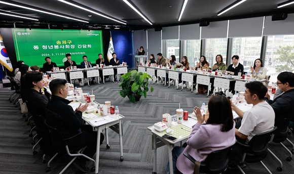 서강석 송파구청장은 지난 3월 11일, 송파구청에서 청년봉사회 회장단과 함께 오찬 간담회를 갖고, 청년봉사회 활성화를 위한 소통의 시간을 가졌다.