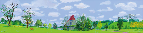 낱개의 파편을 모으는 것을 넘어 시간의 흐름을 통째로 이어 붙인 90m의 대작 ‘노르망디의 1년(A Year in Normandie)’을 세상에 내놓았다. 노르만 정복의 끝없는 이야기를 묘사한 바이유 태피스트리(Bayeux Tapestry)에서 영감을 얻은 그는 사건의 흐름을 시간순으로 이어가는 태피스트리의 형식이 계절과 풍경의 변화를 기록하는 방식과 닮아 있다고 느꼈다. 그리고 밖으로 나갈 수 없던 코로나 시기 동안 스튜디오에 머물며 매일 관찰한 창밖의 풍경과 계절의 변화를 아이패드 위에 섬세히 녹여낸다.
