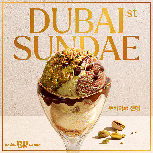 배스킨라빈스는 ‘두바이st 선데’를 출시했다. 신제품은 3월 이달의 맛으로 인기를 끌고 있는 ‘두바이에서 온 엄마는 외계인’을 확장한 디저트 메뉴다.