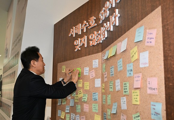 앞서 오 시장은 이날 오전 9시 30분, 서울시청 서울갤러리 내에 조성된 ‘서해수호 55용사 추모공간’을 방문해 국가를 위해 산화한 장병들을 추모하고 ‘조국을 위한 희생과 헌신, 추모와 배려, 말보다 행동’이라고 남겼다.