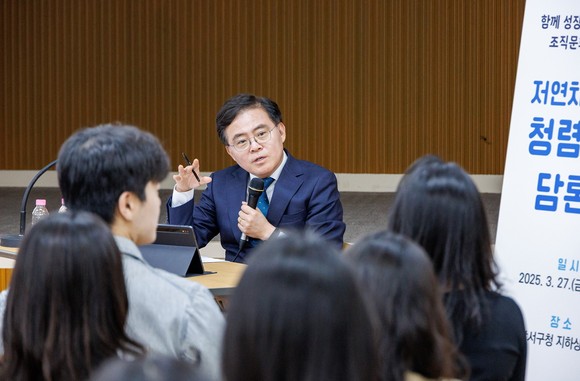 진교훈 서울 강서구청장이 27일(금) 불합리한 관행을 개선하고 일하고 싶은 일터를 만들기 위해 저연차 공무원들과 소통에 나섰다.