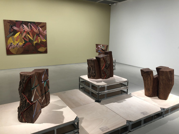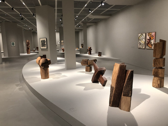2층 전시실에선 김윤신 작업의 또 다른 축인 돌조각을 비롯해, 2000년대 이후 다채롭게 변화한 나무 조각들을 볼 수 있다.