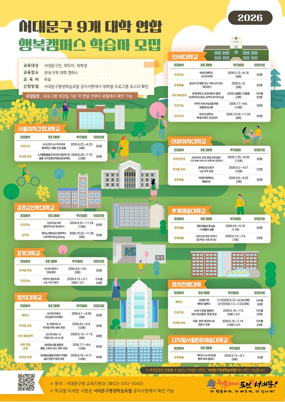 서대문구·9개 대학 연합 행복캠퍼스 학습자 모집 포스터. 이미지=서대문구청