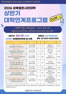 서울 성북구(구청장 이승로)가 2월부터 5월까지 구민을 대상으로 2026 상반기 열린시민대학을 운영한다.열린시민대학은 관내 우수 대학과 전문 기관의 인프라를 활용해 성북구만의 특색 있는 인문미래기술 강좌를 제공하는 평생학습 프로그램으로 구가 주력하는 평생학습을 위한 성북 시민…