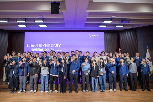 이날 행사에선 특히 남경필 ㈔은구 대표를 초청, 마약 예방 강연 ‘니들이 마약을 알아?–형 말 들어, 이노마(이젠, 노 마약!)’를 진행했다. 남 대표는 ADHD 치료제, 다이어트약, 수면제 등 일상에서 쉽게 접하는 의약품의 오·남용과 최근 젊은 세대 사이에서 마약중독이 확산하는 문제를 짚으며 “개인의 인식 변화와 사회적 경각심의 필요하다”고 강조했다. 강연 후 임직원들은 마약 예방 실천 의지를 다지며 ‘이노마’ 구호를 외치는 세리머니를 함께했다.