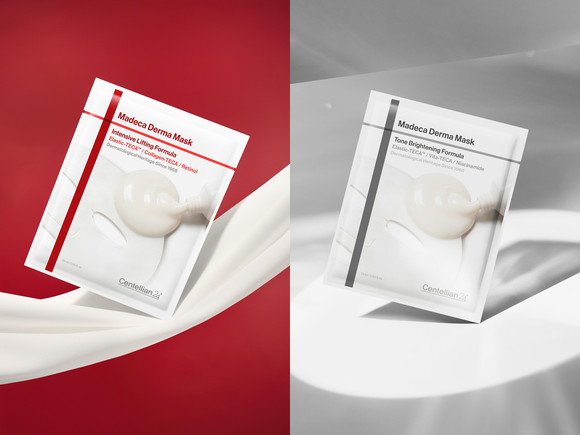동국제약 더마코스메틱 브랜드 센텔리안24가 안티에이징 마스크 ‘마데카 더마 마스크 인텐시브 리프팅 포뮬러’와 ‘마데카 더마 마스크 톤 브라이트닝 포물러’ 2종을 출시한다. 사진=동국제약
