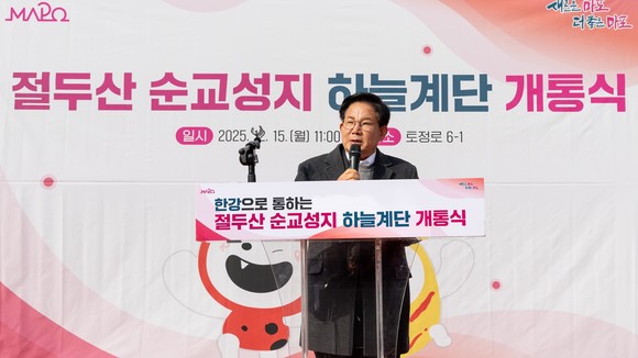 서울 마포구(구청장 박강수)는 마포구(구청장 박강수)는 절두산 순교성지를 찾는 방문객들의 보행 안전을 높이고 성지의 역사적·문화적 가치를 높이기 위해 ‘절두산 순교성지 하늘계단 정비공사’를 추진하고, 12월 15일 개통식을 개최했다.