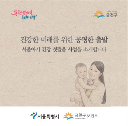 신청은 서울시 임신‧출산 정보센터 누리집 ‘서울아기 건강첫걸음사업’ 서비스를 온라인으로 신청하면 된다. 온라인 신청이 어려운 경우에는 금천구보건소 의약과 모자보건팀으로 전화 문의해 안내받을 수 있다.