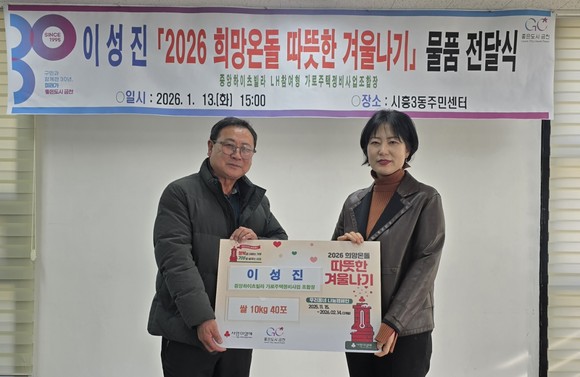 이어 시흥3동 중앙하이츠빌라 가로주택정비사업조합장 이성진 씨도 ‘2026 희망온돌 따뜻한 겨울나기’ 사업에 동참했다. 이 조합장은 지난 13일 시흥3동 주민센터에 저소득 주민들을 위해 쌀 10kg 40포를 기탁했다. 지난해에도 쌀 400kg을 후원하는 등 지속적인 나눔을 실천해 오고 있다.