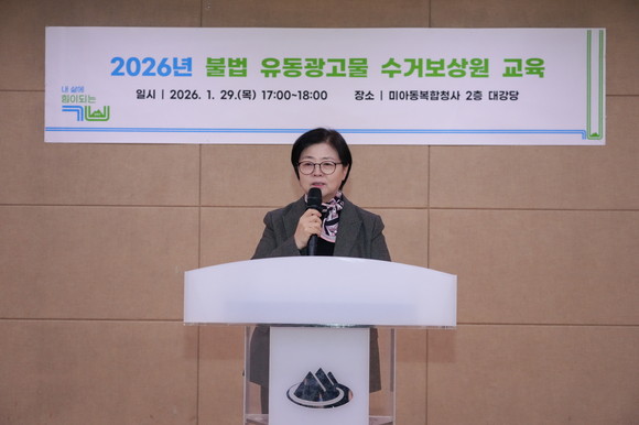 구는 지난 1월 29일 미아동 복합청사 대강당에서 2026년 수거보상제 참여자로 선정된 강북구민 58명을 대상으로 직무 및 안전 교육을 실시했다고 밝혔다.