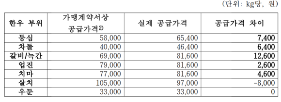 또한 가맹점이 개별 부위를 선택 발주할 수 없고 ‘소 한 마리 세트’ 단위로 구입해야 하는 구조가 운영됐으며, 반품이 납품 후 12시간 이내로 제한됐다는 점도 기재됐다.