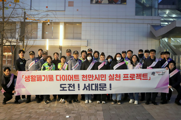서울 서대문구(구청장 이성헌)가 이달 11일 저녁 유동 인구가 많은 신촌 명물거리와 연세로 일대에서 서대문경찰서와 합동으로 ‘생활폐기물 다이어트 실천 및 기본질서 Re-디자인’ 캠페인을 실시했다.