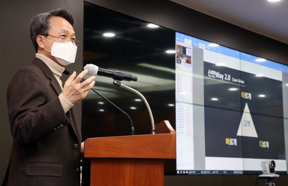 신한은행인 코로나19 확산을 우려해 화상회의 방식으로 진행했다. 이번 워크숍은 '불확실성을 돌파하는 한계를 뛰어넘는 Banking'을 주제로 지난해 경영포럼에서 제시된 핵심 아젠다를 사업에 도입하는 방안을 토론하는 프로그램으로 구성됐다.