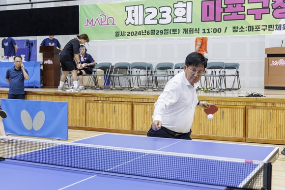 제23회 마포구청장기 탁구대회에 참석한 박강수 마포구청장. 사진=마포구청