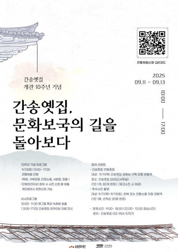 서울 도봉구(구청장 오언석) 도봉문화재단이 간송옛집 개관 10주년을 맞아 9월 11일부터 13일까지 간송옛집에서 ‘간송옛집-문화보국의 길을 돌아보다’ 행사를 개최한다.