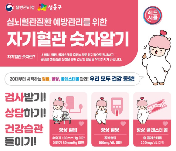 서울 성동구(구청장 정원오) 고혈압·당뇨병 등록교육센터는 9월 한 달간 ‘자기혈관 숫자알기 - 레드서클 캠페인’을 진행한다.