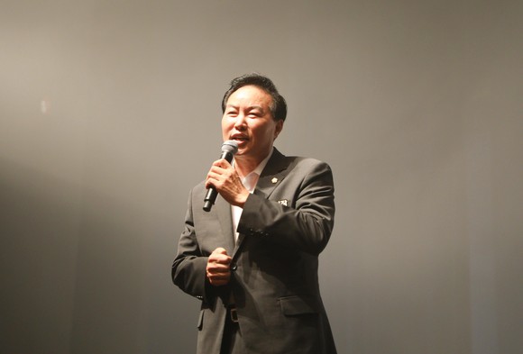 조동탁 의장이 추석맞이 효사랑 한마당 참석해 인사말을 하고 있다. 사진=강동구의회