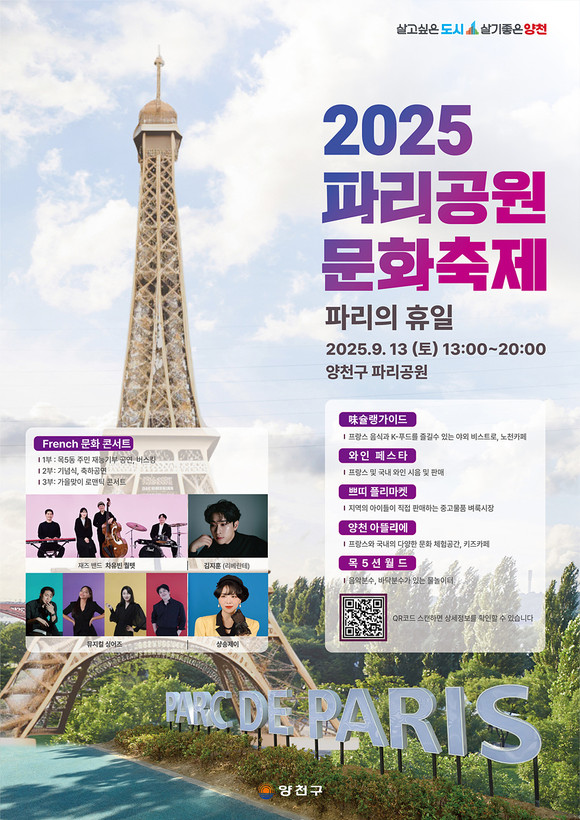 서울 양천구(구청장 이기재)는 오는 13일 파리공원에서 프랑스 음식, 음악, 놀이 등 문화를 체험하며, 파리의 감성을 느낄 수 있는 ‘2025 파리공원 문화축제’를 개최한다고 밝혔다.