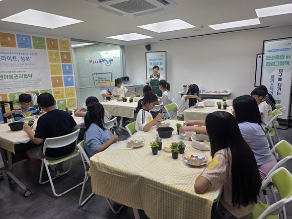 이번 행사에서는 바다유리·폐나무·쉐이커 키링, 비건 쿠키, 양말목 도어벨, 테라리움, 환경그램책 놀이활동 등 다양한 체험 부스가 운영됐다. 행사에는 아동·청소년과 지역 주민 200여 명이 참여해 일상 속에서 지구를 지키는 여러 실천 방법을 공유하는 기회를 가졌다.