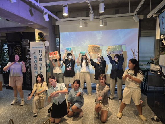 ‘지구를 지키는 플라스틱의 고백’ 프로그램은 지역 내 초·중학생 14명이 참여해 탄소중립 생활 실천문화 확산을 목표로 지난 8월부터 총 13회차에 걸쳐 준비한 공연활동이다. 청소년들은 플라스틱을 의인화해 흥미로운 스토리로 구성한 퍼포먼스를 선보이며 탄소중립 실천의 필요성을 전했다.
