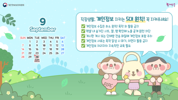 주요 내용으로는 전 직원 대상 개인정보 보호 법령과 주요 내용을 학습하는 퀴즈 캠페인, 9월 30일 당일 불필요한 개인정보 파일을 점검·삭제하는 ‘PC 내 개인정보 파기의 날’ 캠페인, 업무용 모니터 바탕화면을 활용해 개인정보 보호 5대 원칙 메시지를 확산하는 디지털 굿즈 활용 캠페인, 구 누리집과 내부 업무포털 팝업을 통해 참여를 독려하는 홍보 캠페인 등이 있다.
