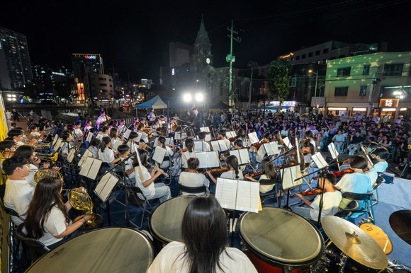 서울 성북구(구청장 이승로) 월곡청소년센터가 주최한 KYF뮤즈 청소년 오케스트라 미니콘서트 ‘가을밤 뮤직 페스타’가 지난 9월 7일 성북구청 바람마당 야외무대에서 열렸다. 이번 공연은 청소년 단원들의 순수한 열정과 음악적 기량을 느낄 수 있는 무대가 됐다.
