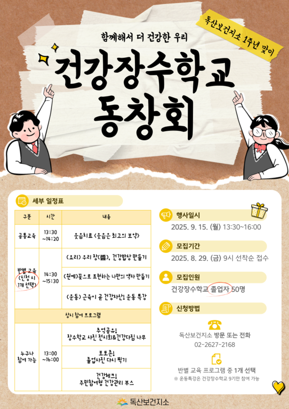 유성훈 금천구청장은 “지난 1년간 독산보건지소가 통합건강관리 거점기관으로서의 기반을 다져온 만큼, 앞으로도 지역 특성에 맞는 주민 밀착형 건강서비스 지속적으로 제공해 나가겠다”라며, “이번 1주년 프로그램이 주민 스스로 건강을 돌아보고 함께 실천해 나가는 소중한 계기가 되길 바란다”라고 말했다.