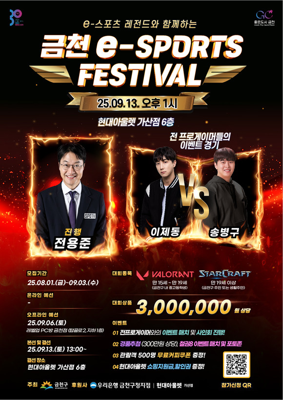 서울 금천구(구청장 유성훈)는 13일 현대아울렛 가산점에서 ‘2025 금천 e-스포츠 페스티벌’을 연다고 밝혔다.