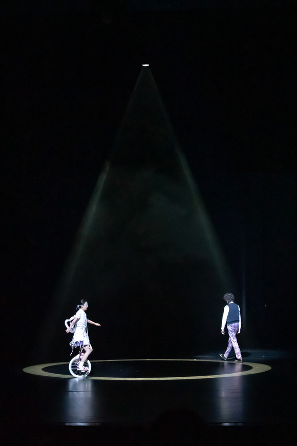 프레젠테이션의 피날레를 장식한 원정백화점 ’세계의 많은 것들이 쌓여있다’는 ‘나리빌’이라는 통신 장치와 그것을 둘러싼 아이들의 서사가 펼쳐지는 SF 세계관 〈나리빌〉과 연동되는 작업이다. 무대 위 퍼포머들의 모습은 카메라에 담겨 이후 제작될 영상 작업 〈나리빌 플리커〉 일부가 된다. 촬영하는 모습을 포함한 극장의 광경은 그 자체로 퍼포먼스와 기록의 관계를 꿈이나 데자뷔처럼 이상한 시간성으로 탐구하는 과정이 됐다. 관객은 외발자전거가 무대 뒤로 유유히 사라지는 장면을 목격하며 〈나리빌〉의 세계관에 발을 내딛는 오묘한 경험에 빠졌다.