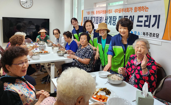 캠프 활동가들은 새마을부녀회원들과 함께 이른 아침부터 정성껏 준비한 삼계탕과 시원한 식혜를 대접하며 안부를 묻고 건강을 기원하는 등 따뜻한 마음을 전했다.