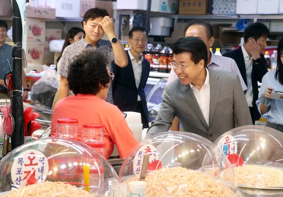 추석맞이 가락몰에서 상인들을 격려하는 서강석 송파구청장. 사진=송파구청