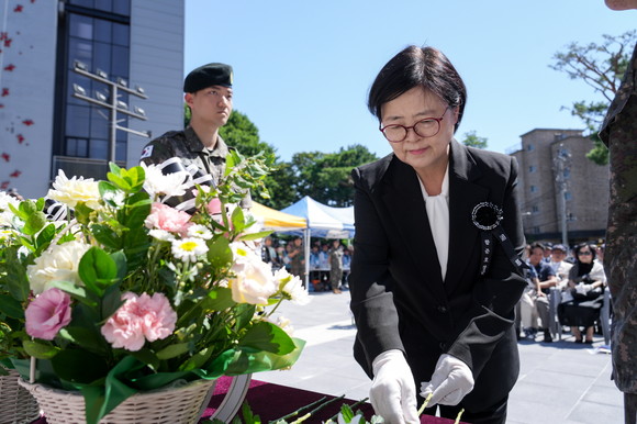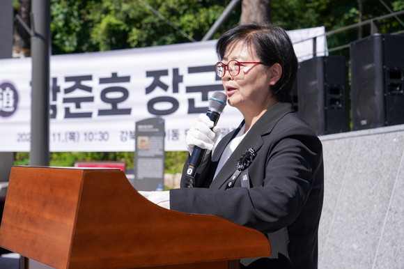 이순희 서울 강북구청장이 11일 우이동 만남의 광장에서 열린 ‘함준호 장군 전사지비 이전 추모식’에 참석했다.