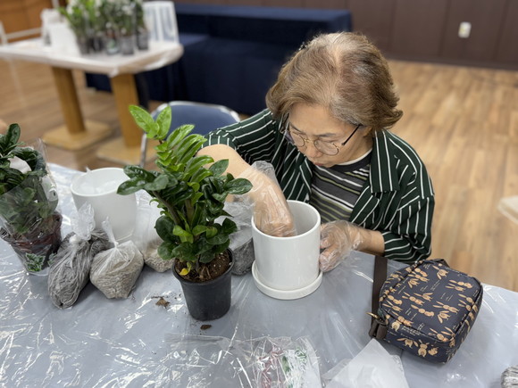 참여자들의 반응도 긍정적이었다. 한 어르신은 “행운과 부를 불러오는 금전수 화분을 직접 만들며 큰 위로가 되었다”며 “이제 금전수를 집에서 키우게 되면 혼자가 아니라는 생각이 들어 기쁘다”고 소감을 전했다. 이날 행사에서는 총 50개의 금전수 화분이 제작돼 관내 고립 위험 1인가구에 전달됐다.
