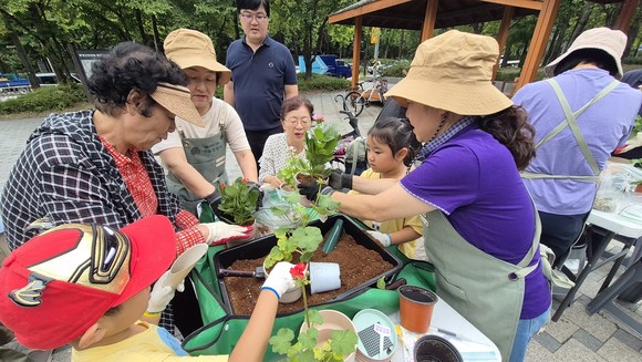 지난 11일에는 장지경로당과 버들어린이집, 12일에는 문정시영아파트 경로당과 힐스테이트아이편한세상어린이집이 참여해 어르신과 아이들이 함께 어우러져 식물 심기, 화분 꾸미기 등 활동을 하며 세대 간 장벽을 허무는 소통의 시간을 가졌다. 또, 송파구 마을정원사들이 봉사자로 참여해 어르신과 어린이들의 식물 가꾸기를 지원했다.