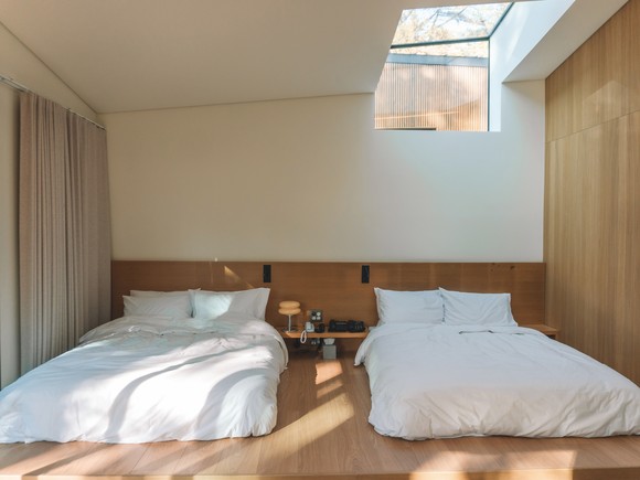 대체로 숲의 경관에 비해 객실의 품질이 아쉬웠던 자연휴양림에 비해 건축과 인테리어, 객실 내부 비품 하나까지 호텔 수준으로 조성됐다. 이미 트레이드마크가 된 나무 위의 집 ‘트리하우스’ 3개 동을 포함해 25개 객실은 숲속의 작은 호텔로 숙박객의 만족도를 높이고 있다.