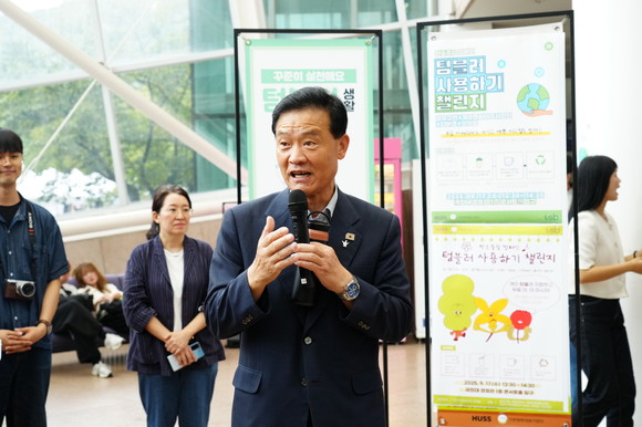 이날 행사에서는 ‘텀블러 사용하기’ 챌린지뿐 아니라 가정이나 사업장에서 전기, 수도, 도시가스를 절약하면 온실가스 감축률에 따라 마일리지를 제공하는 ‘에코마일리지 가입 홍보’도 함께 진행됐다. 아울러 환경동아리 학생들의 활동 내용도 소개됐다.