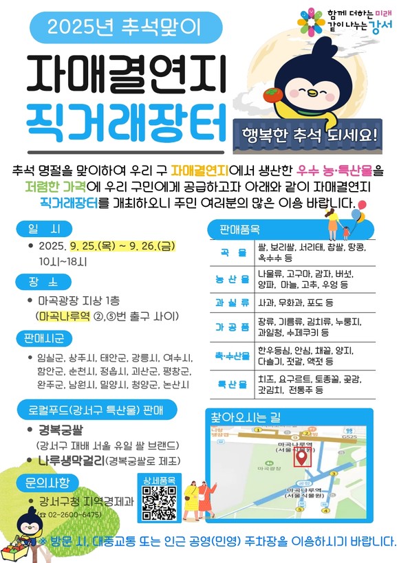 장터는 25일과 26일 오전 10시부터 오후 6시까지 마곡광장 지상(마곡나루역 2, 5번 출구 사이)에서 열린다.