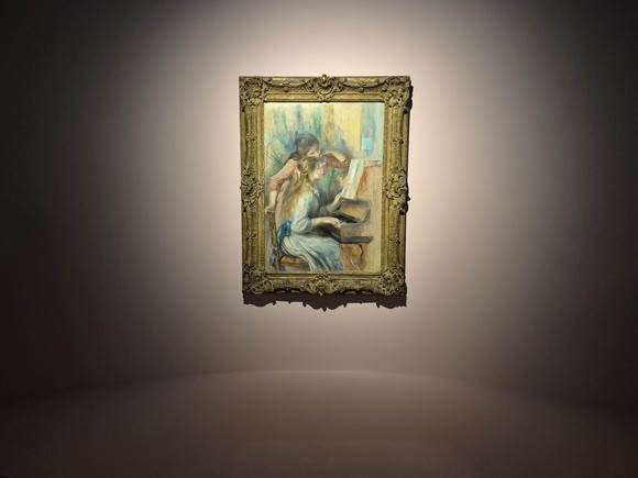 다시 인물을 그린 그림들로 돌아가자. 르누아르의 '피아노 치는 소녀들'은 작가의 인생에서 굉장히 중요한 작품이다. 이 작품은 국가가 작가에게 요청한 첫 작품이기 때문이다. 관객은 작가가 즐거워하며 기쁨으로 즐기며 그린 순간과 감정을 느낄 수 있다. 얼굴과 손에 특별히 신경을 쓴 부분과 옷 주름, 리본에도 신경을 썼다는 것이 느껴진다.