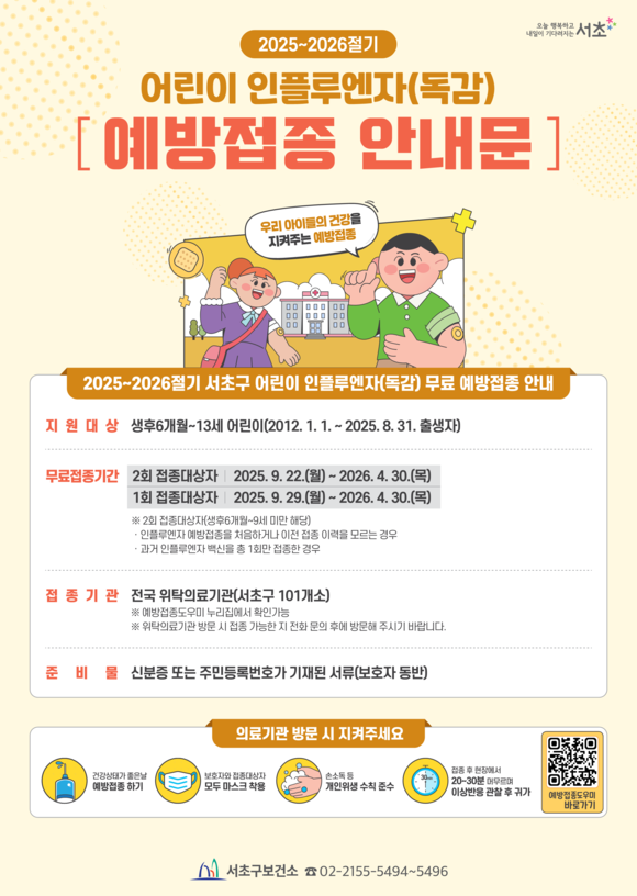 서초구 인플루엔자 예방접종 안내문_어린이. 이미지=서초구청