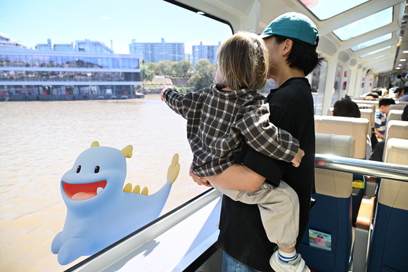 한강버스 안에서 한 어린아이가 창밖으로 보이는 풍경을 가리키며 즐거워하고 있다. 사진=서울시청