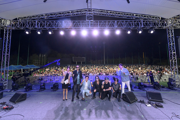2024년 양천 락 페스티벌에서 뮤지션과 함께하고 있는 이기재 양천구청장. 사진=양천구청