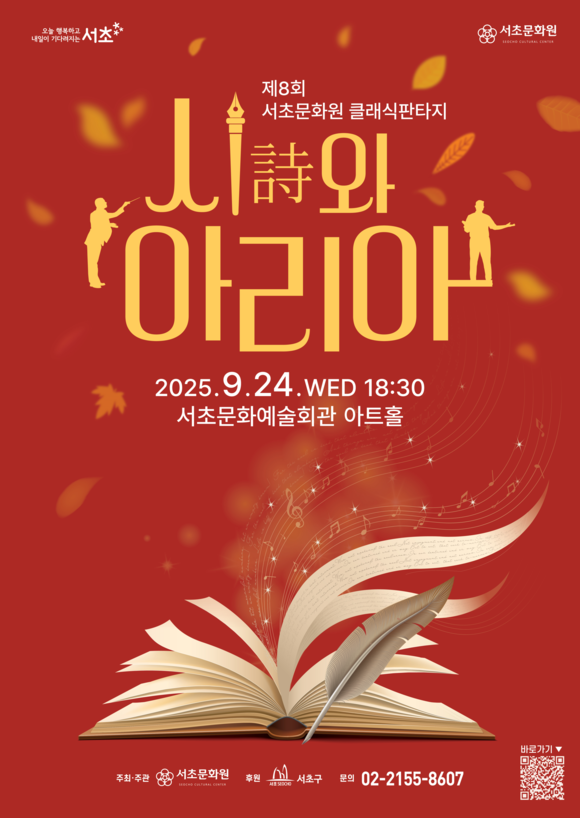 서울 서초구(구청장 전성수)는 오는 9월 24일(수) 오후 6시 30분, 서초문화예술회관 1층 아트홀에서 <제8회 클래식 판타지: 시詩와 아리아>를 개최한다고 밝혔다.