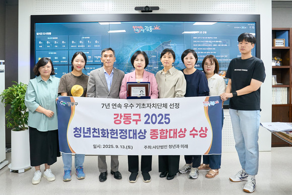 서울 강동구(구청장 이수희)가 국회사무처 소관 사단법인 ‘청년과미래’가 주관하는 ‘2025 청년친화헌정대상’에서 ‘종합대상’을 수상하며, 7년 연속 청년정책 우수 자치단체로 선정되는 영예를 안았다고 23일 밝혔다.