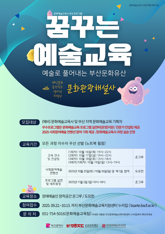 10월 16일~19일 '꿈꾸는 예술교육: 예술로 풀어내는 부산문화유산' 개최... 문화관광해설사와 함께 지역 자원을 활용한 문화예술교육 프로그램 개발