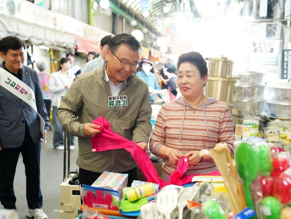 이날 류경기 구청장을 비롯한 직원들은 시장 곳곳을 돌며 신선한 농산물과 제수용품을 구매하고, 상인들의 애로사항을 경청했다. 단순한 장보기를 넘어 전통시장에 대한 애정과 관심을 나누고, 민생 현장의 생생한 목소리를 듣는 시간으로 마련됐다.