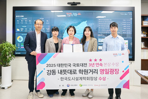 서울 강동구(구청장 이수희)는 지난 18일 ‘2025 대한민국 국토대전’에서 ‘강동 내뜻대로 학원가 명일광장 조성사업’으로 한국도시설계학회장상을 수상했다고 24일 밝혔다.