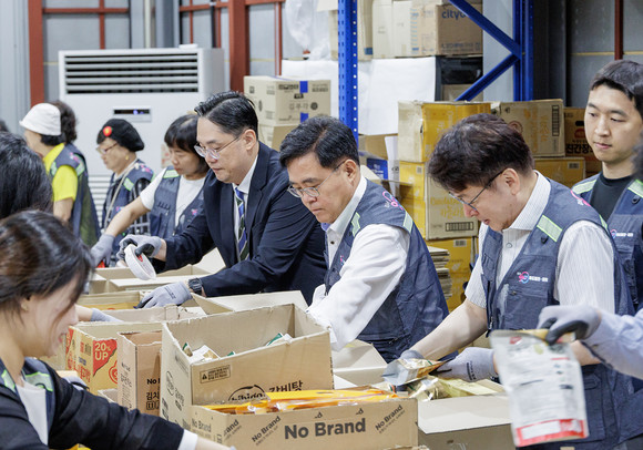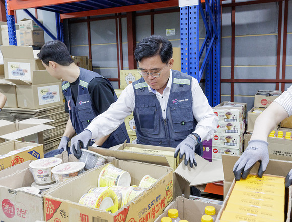 나눔 꾸러미에는 갈비탕, 잡채, 즉석밥과 같은 간편식부터 김부각, 약과 등 12종의 식품이 가득 담겼다.