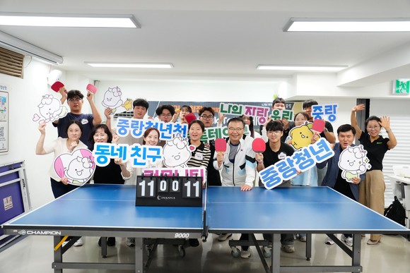 이날 행사에는 동네친구 커뮤니티 참여자 12명 등 총 16명의 청년이 함께했다. 류경기 중랑구청장도 자리를 함께해 청년들과 직접 탁구 경기에 나서며 현장의 열기를 더했다.